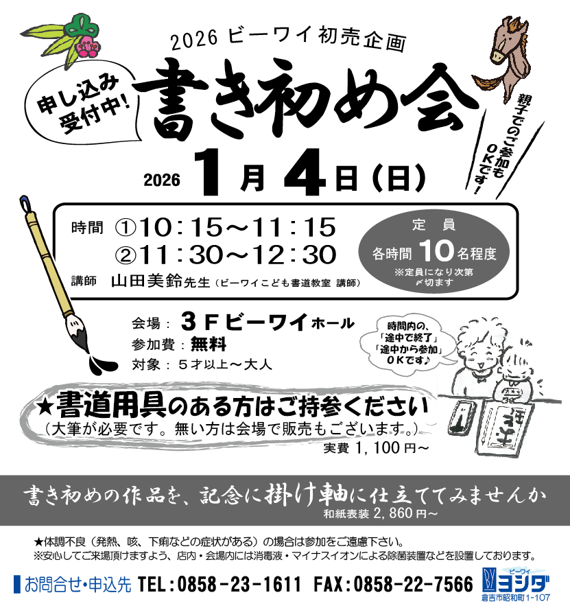 毎年ご好評の「書き初め会」を、2026年も開催します。